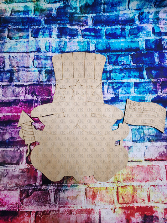 Sitting Patriotic Gnome w/Lines