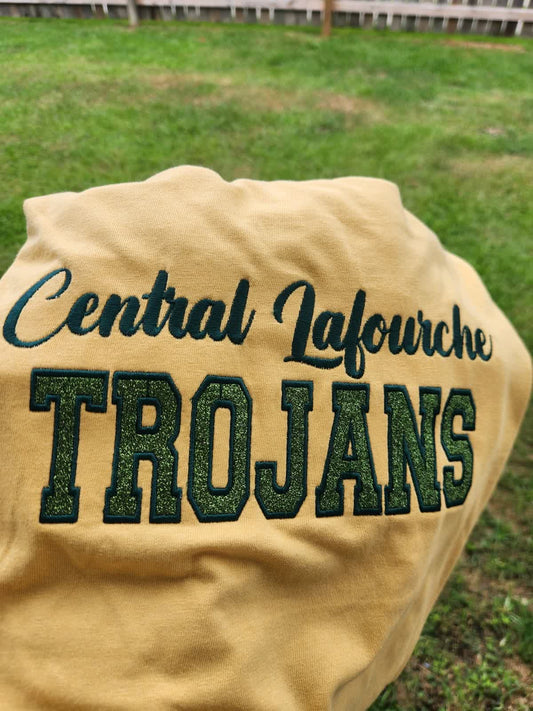 Custom Mascot Option Embroidered Sweatshirt Double Layer Glitter Script