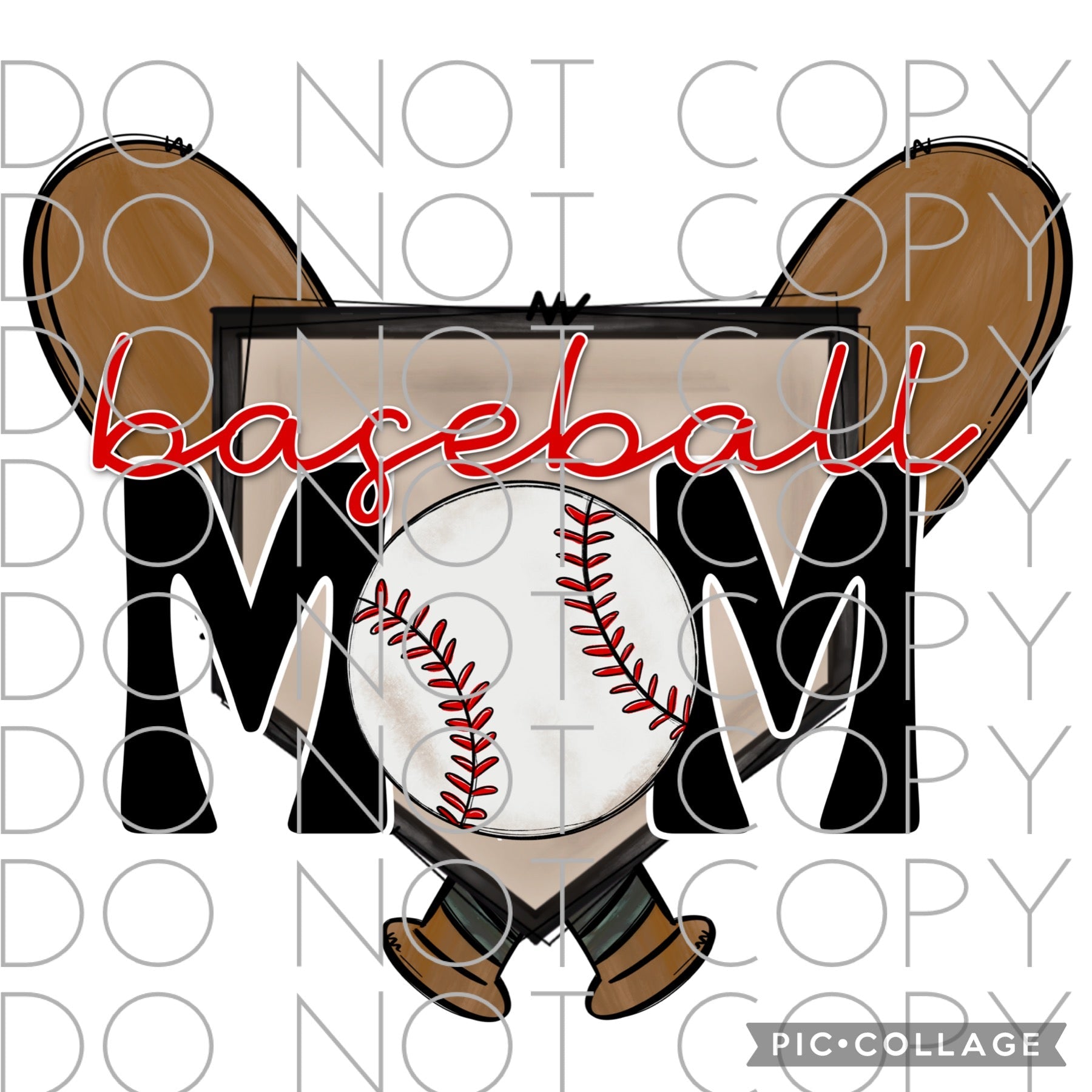 Baseball Mom with crossed bats and base(Direct To Film)