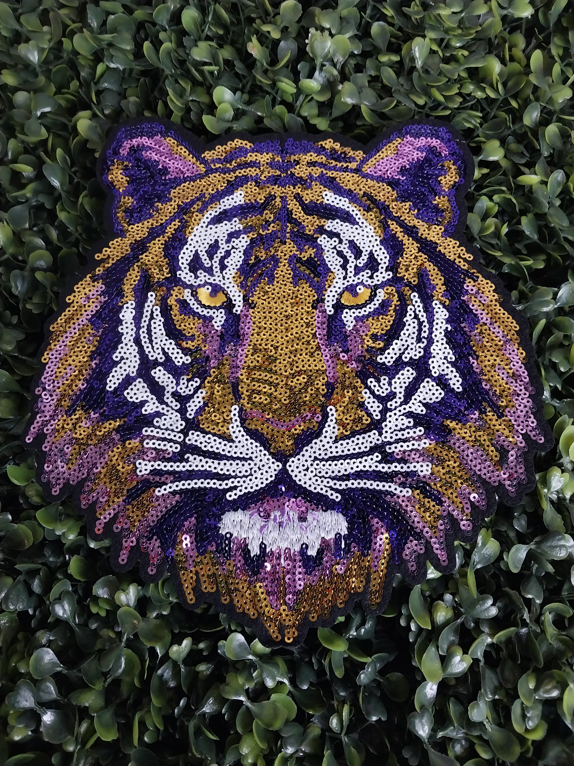 Purple and Gold Tiger Patch Head